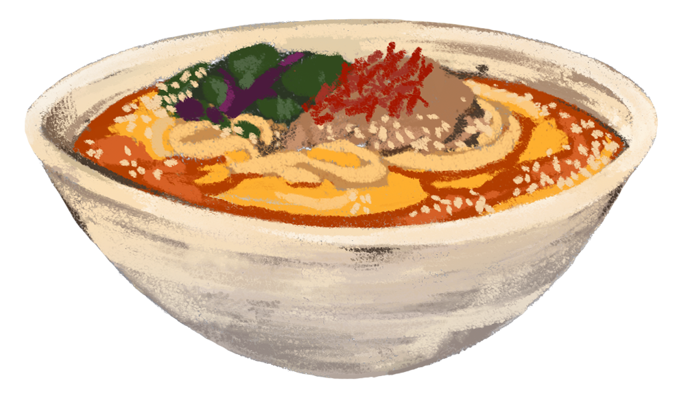 Spicy ramen with sesame, fish-bone & chicken broth, topped